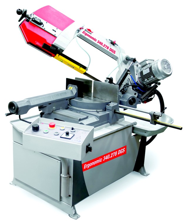 Die Doppelgehrungs-Bandsäge Ergonomic mit einem 1,5 kW Antrieb ermöglicht die stufenlose Einstellung für Gehrungsschnitte von rechts 45, links 45 bis rechts 60. Der kleinste zu sägende Durchmesser beträgt 5 mm und die maximale Abmessung für Vollmaterial kann 150 mm betragen. Rohre bis zu einem Durchmesser von 250 mm und Vierkantprofile von 320 x 100 mm, 320 x 250 mm sowie 250 x 250 mm lassen sich trennen. Es lassen sich Reststücklängen von 20 mm erreichen.