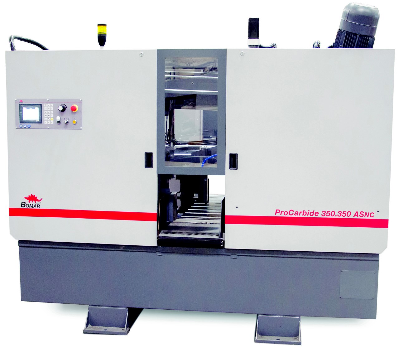 Brünn / Witten, August 2018 BOMARs neue automatische CNC-Hochleistungsbandsäge ProCarbide 350.350 ASNC in kompletter Einhausung zeichnet sich durch hohe Maschinen-performance, Schnittqualität bei gleichzeitiger Reduzierung der Betriebsmittel sowie große Integrationsfähigkeit aus. Auf-grund ihrer speziellen Konstruktion ist es für den Anwender einfacher, unter Verwendung von hartmetallbestückten Säge-bändern hohe Schnittstandards einzuhalten. Dadurch entsteht ein optimales Zusammenwirken zwischen Geschwindigkeit und Schnittqualität.