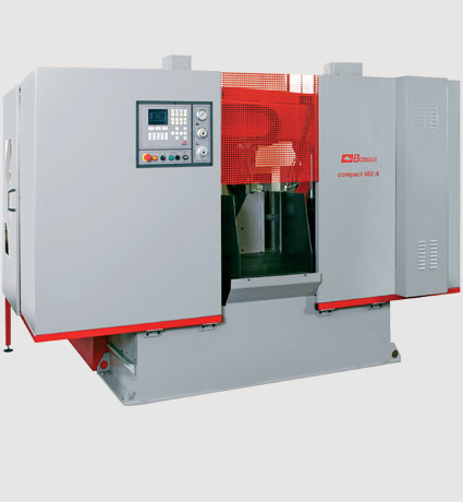 Die Metallbandsägen der Reihe COMPACT sind schwere, voll verkleidete Produktionsautomaten in Zweisäulen-Bauweise. Sie bieten durch ihre Vollverkleidung eine wesentlich erhöhte Sicherheit und Sauberkeit am Arbeitsplatz. Die Maschine ist geeignet für Zuschnitte aus Vollmaterial und kann durch Erweiterung mit einem hydraulischen Bündelspanner Werkstücke im Bündel schneiden. Je nach Einsatzgebiet kann diese Maschine ab Werk für den Einsatz von Hartmetall-bestückten Sägebändern angeboten werden! Mit Polymerbeton gefüllter Sägerahmen und Teile des Untergestells, sowie spielfrei vorgespannte Linearführungen des Sägerahmens sorgen für eine hervorragende Schnittleistung und eine höchstmögliche Sägebandstandzeit.