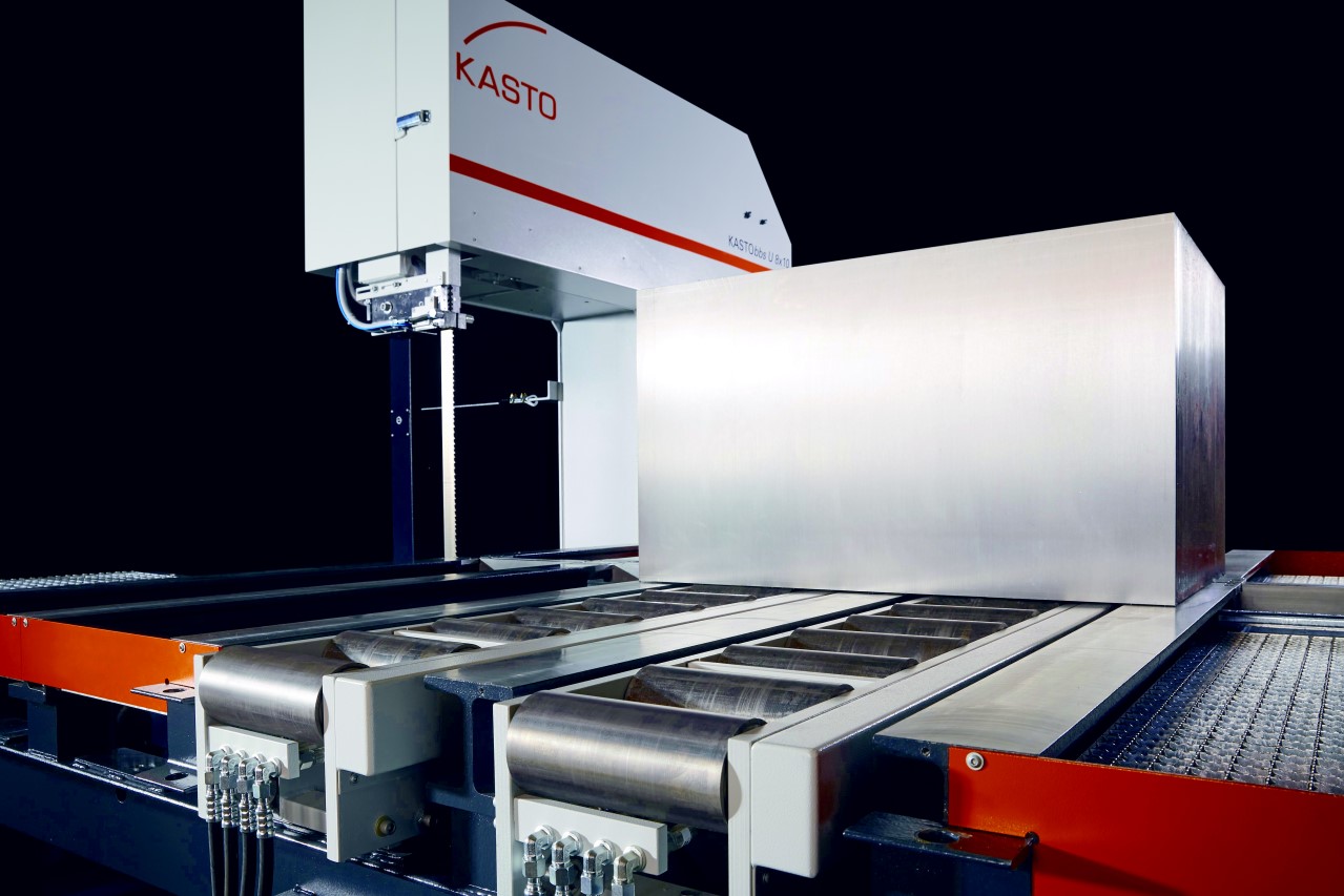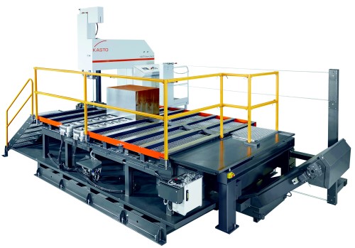 Sämtliche Anzeige- und Bedienelemente der KASTObbs befinden sich auf einem mitfahrenden Steuerpult. Das sorgt für maximale Übersicht, einen ungehinderten Blick auf das Werkstück und eine gefahrlose Kontrolle des Schnittvorgangs. Für unterschiedliche Anforderungen in Sachen Automatisierung bietet KASTO die Säge sowohl als halbautomatische Variante KASTObbs U wie auch als vollautomatische Ausführung KASTObbs A an. Letztere verfügt neben elektromotorisch angetriebenen Vorschubeinheiten und Werkstückanschlägen auch über eine optional verfügbare Funktion der 0/90-Bandverdrehung. Damit ist der Anwender in der Lage, Werkstücke sowohl in Längs- wie auch in Querrichtung zur Rollenbahn zu sägen. Dies ermöglicht einen mannlosen Betrieb vom vollständigen Block bis zum fertig zugeschnittenen Werkstück.