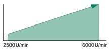 -	Stufenlose Drehzahlregelung von 2500 bis 6000 U/min