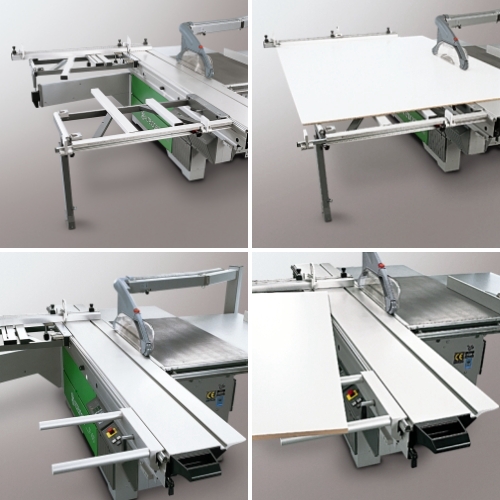 2.	Flexibles Maschinenkonzept, welches dem Bediener +/- 1/10 mm genaues rechtwinkliges Formatieren, Winkel- und Gehrungsschnitte auf einfachste Weise ermöglicht.