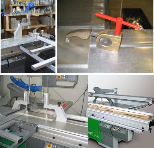 -	Beidseitig gelagerte Kippanschläge mit fester Klemmung garantieren Maßhaltigkeit
