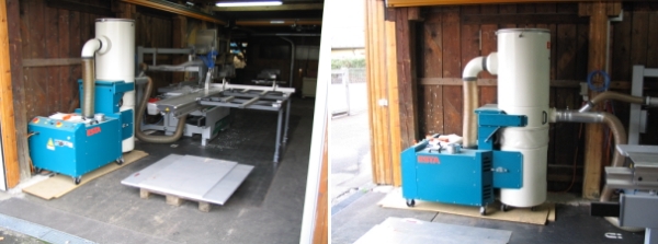 Da die Maschine über keine eigene Absaugung verfügt, empfehlen wir den Einsatz von Unterdruck- bzw. Reinluftabsauggeräten, welche den folgenden Angaben unserer Maschine entsprechend ausgestattet ist.