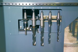 Each tool changer has a magazine for 5 tools in the range of drill diameter 8 to 40 and thread tap diameter M8 to M24.