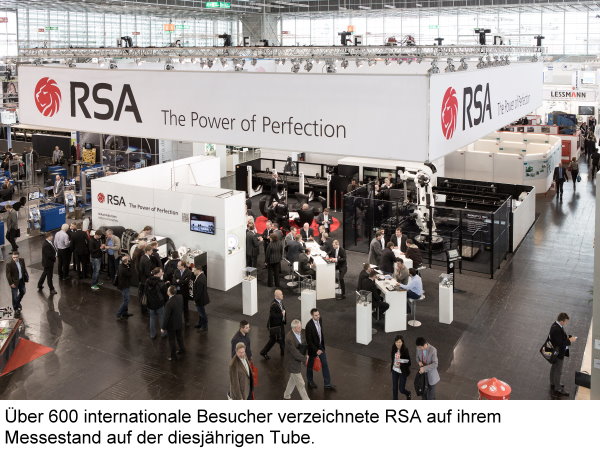 Die Tube ist nicht nur die Leitmesse, sondern auch Stimmungsbarometer der internationalen rohr- und stahlverarbeitenden Industrie. Die Infos, die RSA durch über 600 Gespräche mit Kunden und Interessenten während der Messe erhalten hat, sind durchweg positiv. Die Investitionsbereitschaft unserer Kunden hat deutlich angezogen. Auffällig ist der Trend weg von standardisier-ten Sägezentren hin zu maßgeschneiderten Lösungen, die individuell an die Anforderungen unserer Kunden angepasst werden, so Dipl.-Wirt.-Ing. Thomas Berg, geschäftsführender Gesellschafter der RSA cutting systems GmbH in Schwerte.