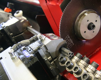The consistent reduction of ancillary times and the optimum combina-tion of machine and tool technology are the basis for increased productivity. In addition RSA manufacturers in its own saw blade production tooth geometries that perfectly match with the workpiece. Variable cutting speeds and the use of solid-carbide blades mean high cutting performance and long working life of the tools as well as the observation of tightest tolerance limits.