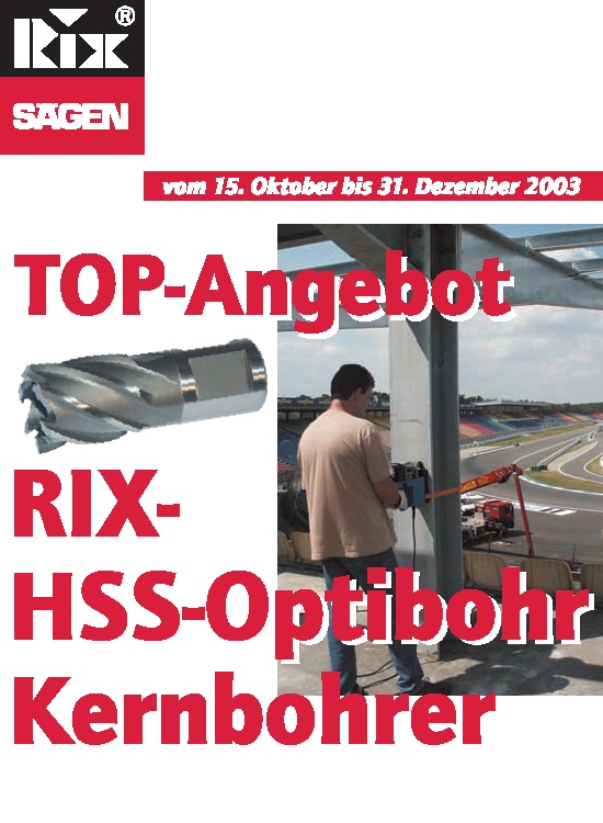 Unser langjähriger Werbepartner für Sägebänder, die Firma Sägen - Mehring GmbH aus Hockenheim informierte uns über eine Sonderverkaufsaktion "RIX-HSS-Optibohr-Kernbohrer".