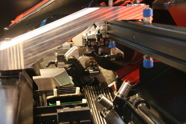 Sowohl das Zuführen der Werkstücke als auch die Übergabe an nachfolgende Prozesse laufen in dem Säge-Zentrum über NC-Achsen, die mit Geschwindigkeiten bis 5 m/s arbeiten. Das sichere Handling der Werkstücke vor, während und nach dem Sägeprozess gewährleistet einen Präzision von +/- 0,2 mm und eine schonende Behandlung der Oberflächen, sodass anschließendes Verchromen problemlos ist. Wichtig für Automobilzulieferer: die Werkstücke werden nach dem Sägen einzeln bearbeitet und vermessen. Damit ist eine echte 100%-Kontrolle gewährleistet, entsprechend den Vorgaben und Normen der OEMs.