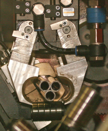 Das erste Konzept zur Stückkostenreduzierung basiert auf einer höheren Produktivität durch eine drastische Erhöhung der Ausbringungsleistung. RASACUT MXS ist der Name des Säge-Zentrums, mit dem dies realisiert wurde. Im Dreifachschnitt erreicht das Säge-Zentrum je nach Werkstückabmessung Ausbringungen bis 11.000 Stück/h. Ausgelegt ist das Säge-Zentrum für Rohrdurchmesser von 6 mm bis 20 mm im Dreifach- und