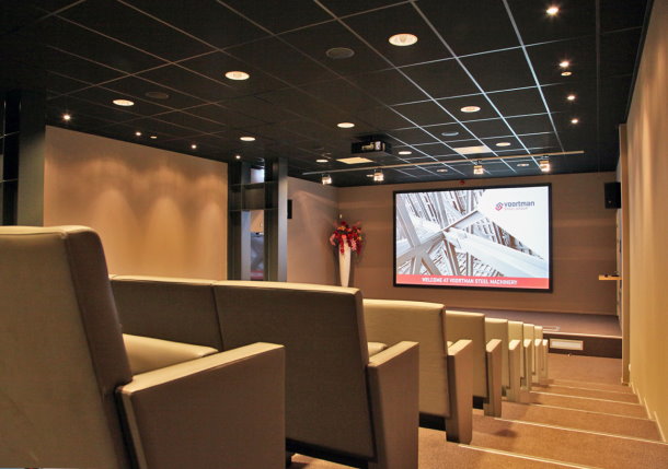Next to the showroom, the Voortman Experience Center houses an 1100 m2 office space with modern meeting rooms to discuss several solutions Voortman offers for your business, as well an auditorium for presentations to bigger groups.