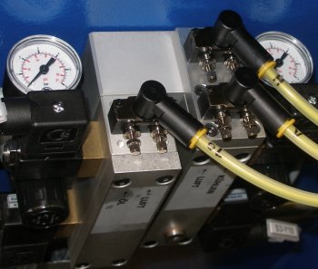 Profis und Mehrfachanwender bietet SPONTAN weitere Raffinessen. Für die gleichbleibende Anwendung an mehreren Maschinen, wie zum Beispiel zehn Sägeautomaten bietet eine Versorgungsstation die Zuführung aller Medien an alle Sägen. Für große räumliche Entfernungen kann aber auch nur die Emulsion aus der Versorgungsstation zugeführt und die Pressluft vor Ort an der Maschine zugeschaltet werden. Für unterschiedliche Einsatzgebiete wie Sägen und Bohren oder Drehen kann über einen Netzwerkadapter an der Maschine auch für jede Maschine einzeln Schmiermittel, Kühlmittel und Luftdruck reguliert werden.