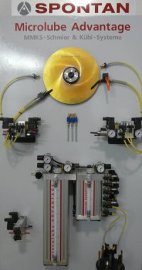für Einsteiger und Einzelanwender bietet dieses System erstaunlichen Variantenreichtum, der zur idealen Abstimmung auf Werkstoff, Schneidwerkzeug und Geschwindigkeit des Prozesses führt. Maßgeblich verantwortlich dafür sind die große Auswahl und Kombinierbarkeit unterschiedlicher Methoden und Aufbringungspunkte. Spontan unterscheidet hier grundsätzlich zwischen einem oder mehreren Schmiermedien in Verbindung mit einem oder mehreren Kühlmedien bis hin zur reinen oder kombinierten Kühlung durch ca. 40 C kalter Luft.